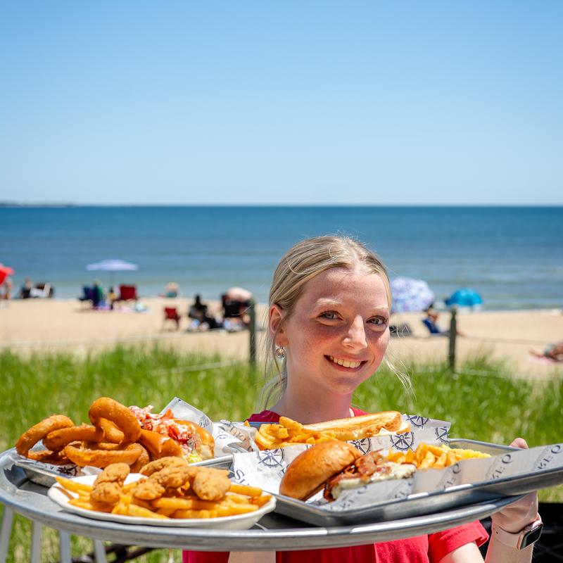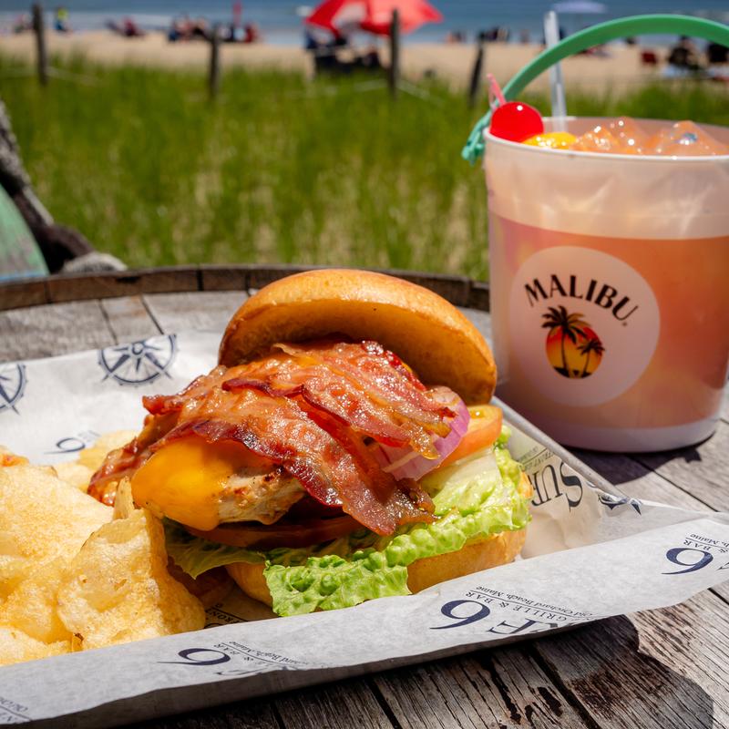 Surf 6 Oceanfront Grille & Bar has for over 50 years provided a unique oceanfront dining and entertainment experience for its guests throughout the spring, summer, and fall seasons. With breathtaking views of the Atlantic Ocean as well as the ideal setting to enjoy casual dining and live music SURF 6 is the best place in town to dine on the beach! As you enter Surf 6, you will notice immediately the grand oceanfront view and the casual, relaxed atmosphere and nautical theme. The very unusual bar is the bow end of a once real working lobster boat! You will have a large choice of seating indoors or out on the sunny beachfront patio deck, all with an unparalleled view of the beach, pier, and beautiful ocean beyond. Our menu has something special for every taste and appetite. We also offer a “Lil’ Mates” menu for families with young children. Meals are served daily in season from 11:00 a.m. until late evening.